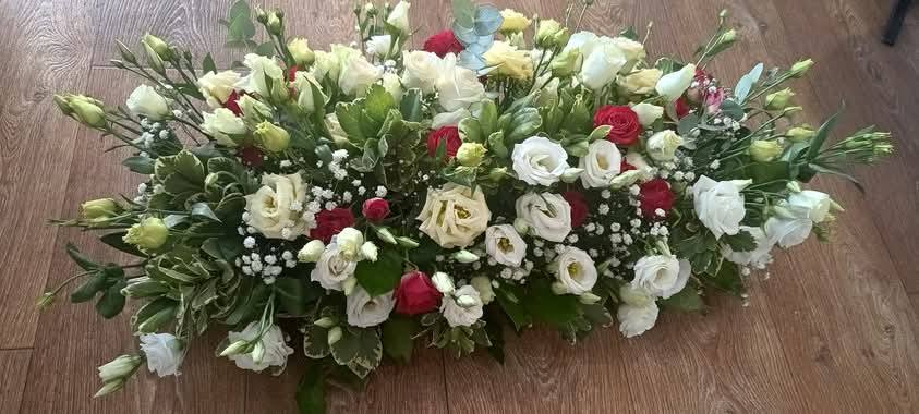 Prezidiu cu minirose, lisianthus, gypsophila, eucalipt, pittosporum